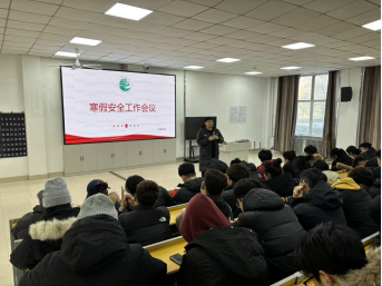 为切实保障学生寒假期间的人身与财产安全,筑牢假期安全防线,12月31日11:40,体育学院于主楼1-4阶梯教室召开寒假安全工作专题会议。会议由副处级辅导员陈鑫主持,学院学生工作办公室副主任、学生党支部书记徐汇阳及全体学生参会。