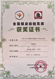 12月8日,2025年全国健身瑜伽公开赛总决赛在重庆市长寿区圆满落幕,作为全年系列赛事的终极之战,本次赛事汇集全国公开赛分站赛前六名及锦标赛前八名的顶尖选手,来自全国18个省、市、自治区的236名运动员齐聚重庆长寿,展开为期三天的精彩巅峰对决,为本年度健身瑜伽赛事画上了圆满句号。 我校健身瑜伽队派出的五名优秀队员在几十所高校中脱颖而出获得优异成绩。
