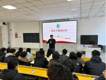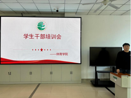 为建强学院团学组织队伍,总结上一学年团学工作成效,明晰新学期工作重点,凝聚全员力量助力学院各项工作高质量推进,3月6日13:10分,体育学院在主楼1-1阶梯教室召开学生干部培训会。学院副处级辅导员陈鑫主持会议,全体学生干部参会。
